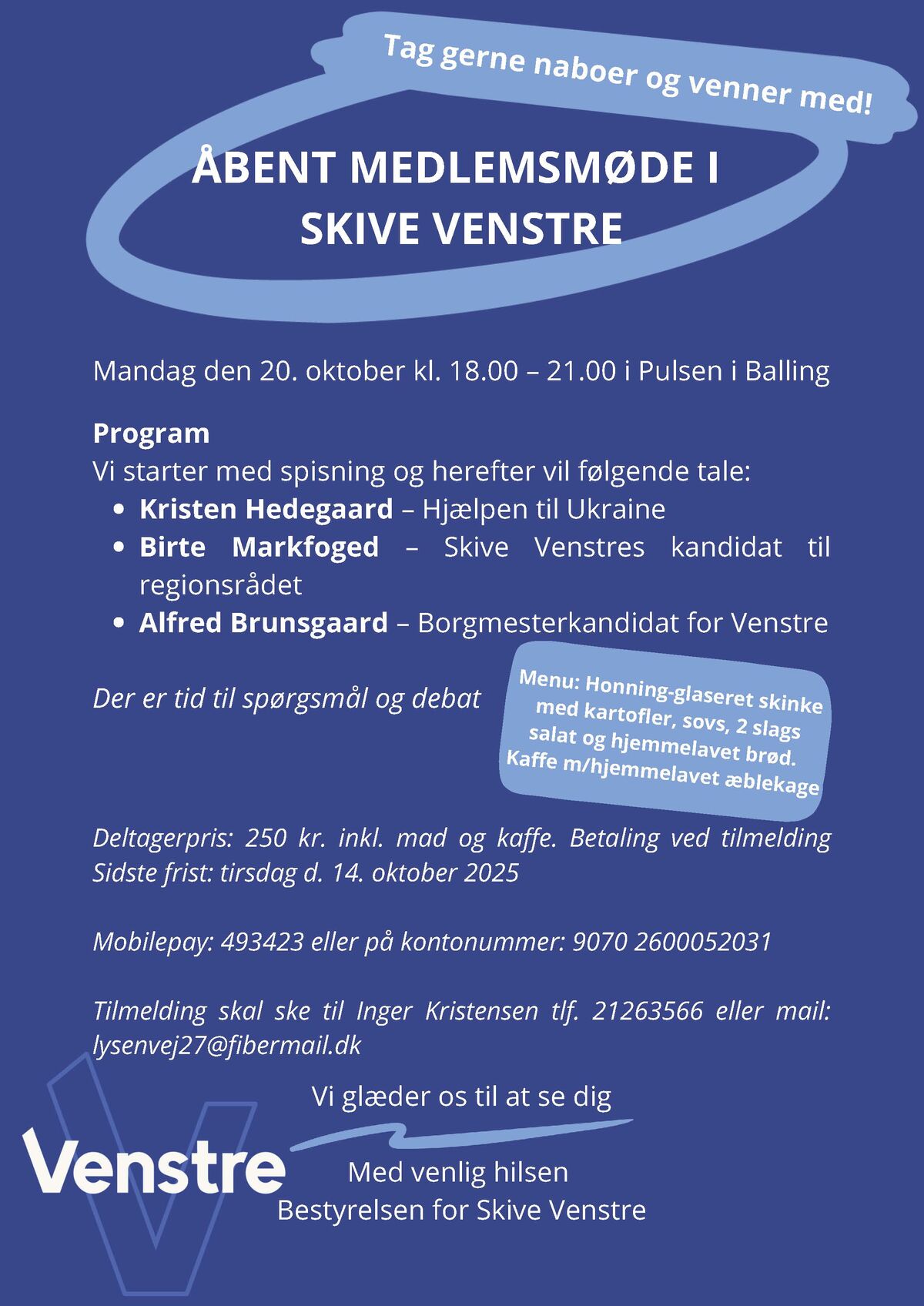 ÅBENT MEDLEMSMØDE I SKIVE VENSTRET
